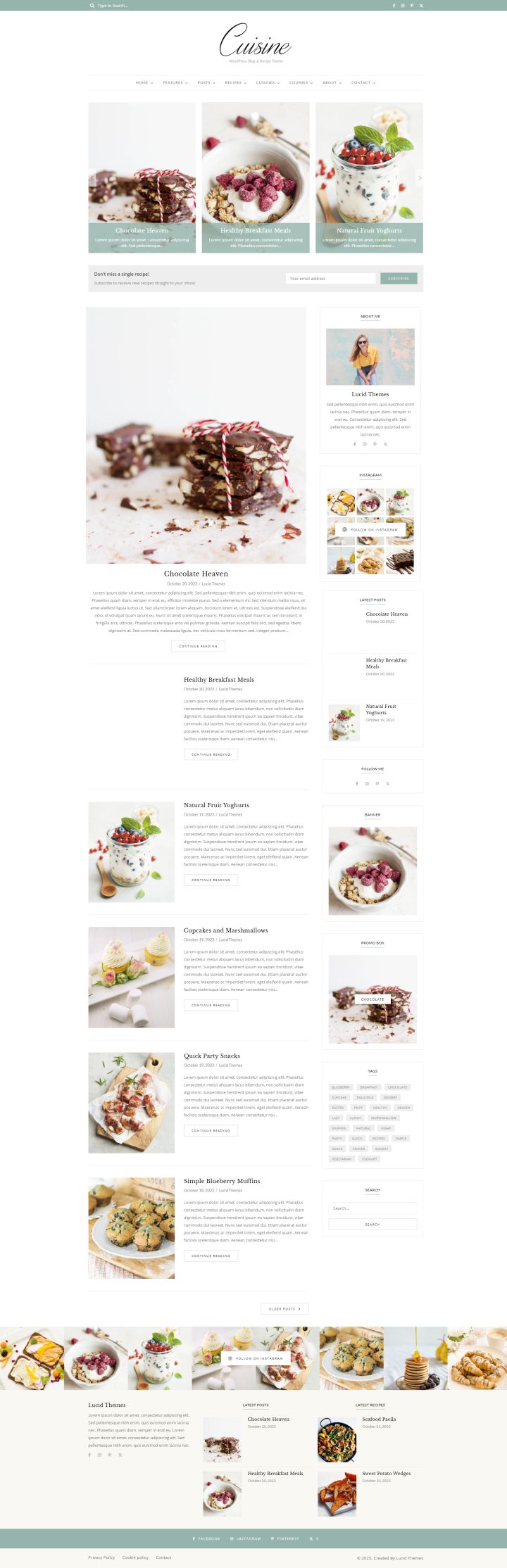 В основу шаблона заложено глубокое понимание современных тенденций кулинарного блогинга. Центр внимания - простота представления рецептов, сочные фотогалереи и удобные тематические разделы. Каждая деталь интерфейса раскрывает фотографии блюд и лаконично демонстрирует рецепты: крупные яркие изображения, минималистичная сетка, стильные цветовые акценты формируют привлекательную визуальную подачу. Особое внимание уделено выбору гарнитур и расстановке текстовых блоков - благодаря этому описания становятся легко читаемыми, а сам контент вызывает аппетит даже у искушённого читателя.