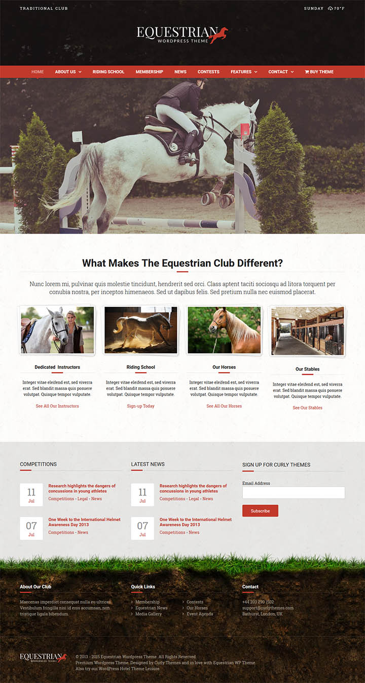 ThemeForest Equestrian - это шаблон WordPress, предназначенный для конных клубов и связанных с ними сайтов. Уникальный дизайн и функциональность, которые предлагает эта тема, делают ее подходящей для представления услуг, связанных с конным спортом и уходом за лошадьми, обеспечивая широкие возможности для адаптации и настройки под нужды конкретного бизнеса. Современные элементы и интуитивно понятный пользовательский интерфейс позволяют владельцам сайтов легко управлять контентом.